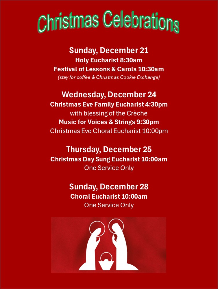 The Cathedral Office is open Tuesday through Friday from 9 am to 3:30 pm. Clergy office hours vary, however, all staff members can be reached by email or by leaving a phone message.